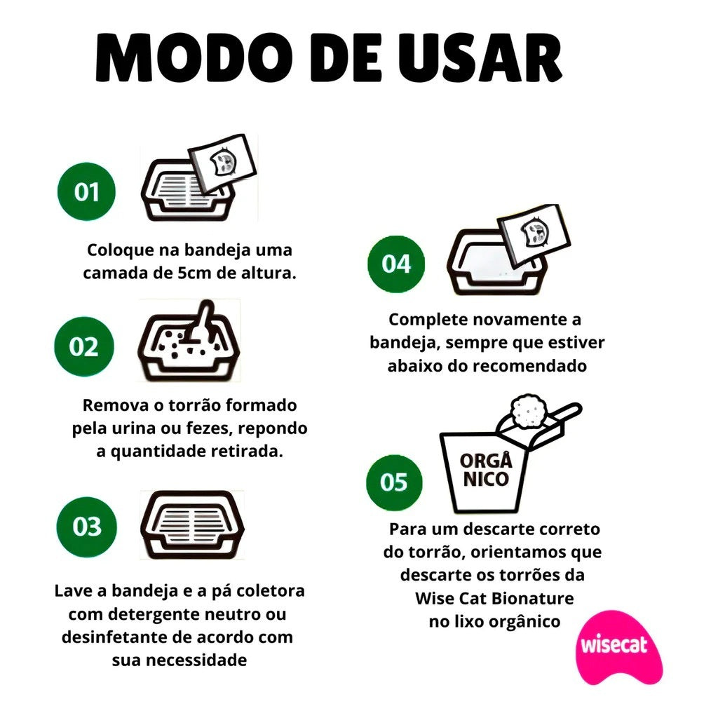 Areia Higiênica Para Gato de Mandioca 2kg e 4kg Wisecat Biodegradável Areia de Gato Sustentável