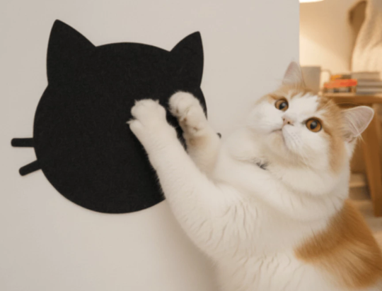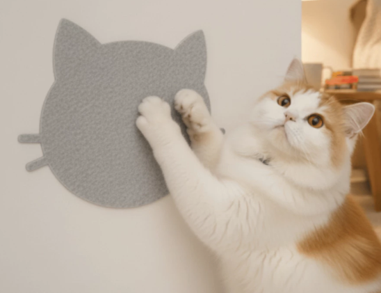 Combine proteção e estilo com o Arranhador Adesivo Carinha de Gato em Carpete Premium! Perfeito para sofás, camas, paredes ou qualquer superfície que precise de proteção, ele oferece um espaço seguro e divertido para seu gato arranhar e se exercitar.