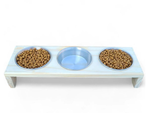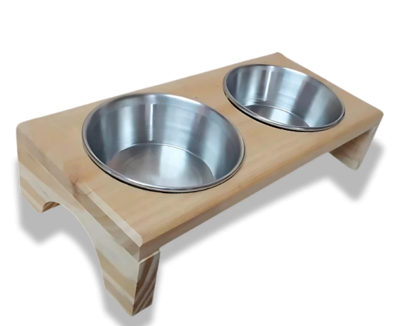 Comedouro de Gato em Madeira e tigela de Alumínio